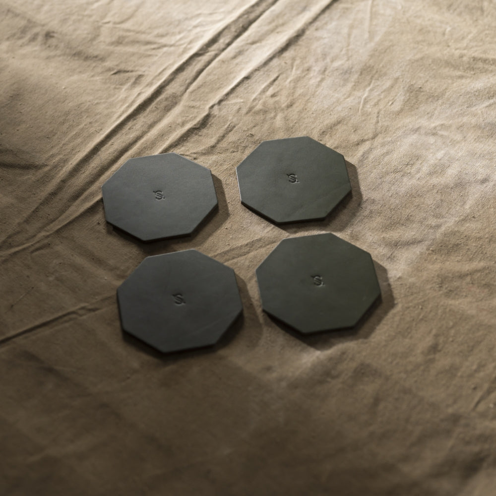 In the quiet solitude of your cabin, you set a drink on the wooden table. The glass starts to sweat, innocent droplets form on the surface, clinging to the glass like morning dew. Slowly, they begin their journey downward, meandering across the glass and finally reaching the unprotected table. Each droplet leaves a tiny, glistening trail, pooling into a perfect circle. As you notice the spreading stain, you reach for the leather coaster, knowing it will guard the aged wood table.
