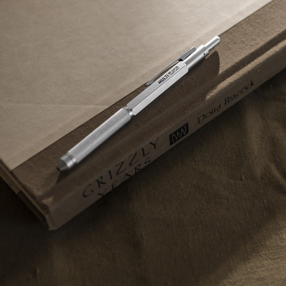 The Ohto MF-20K3B Multifunctional Pen is a versatile brass-body writing tool with a mechanical pencil and black/red ballpoints. To change between colors, rotate the pen to the desired colored dot. The Gravity-select mechanism ensures that your desired pen color emerges. Made in Japan.