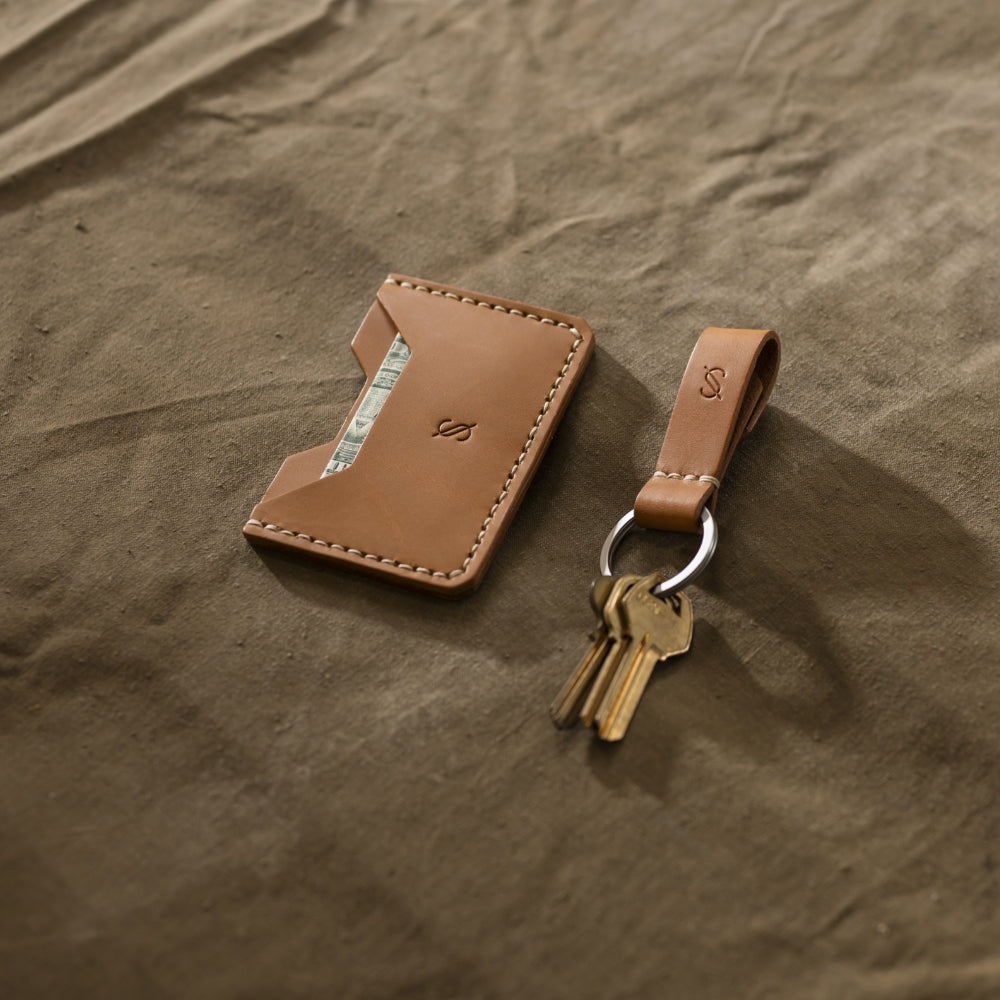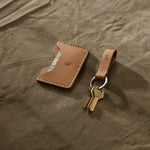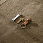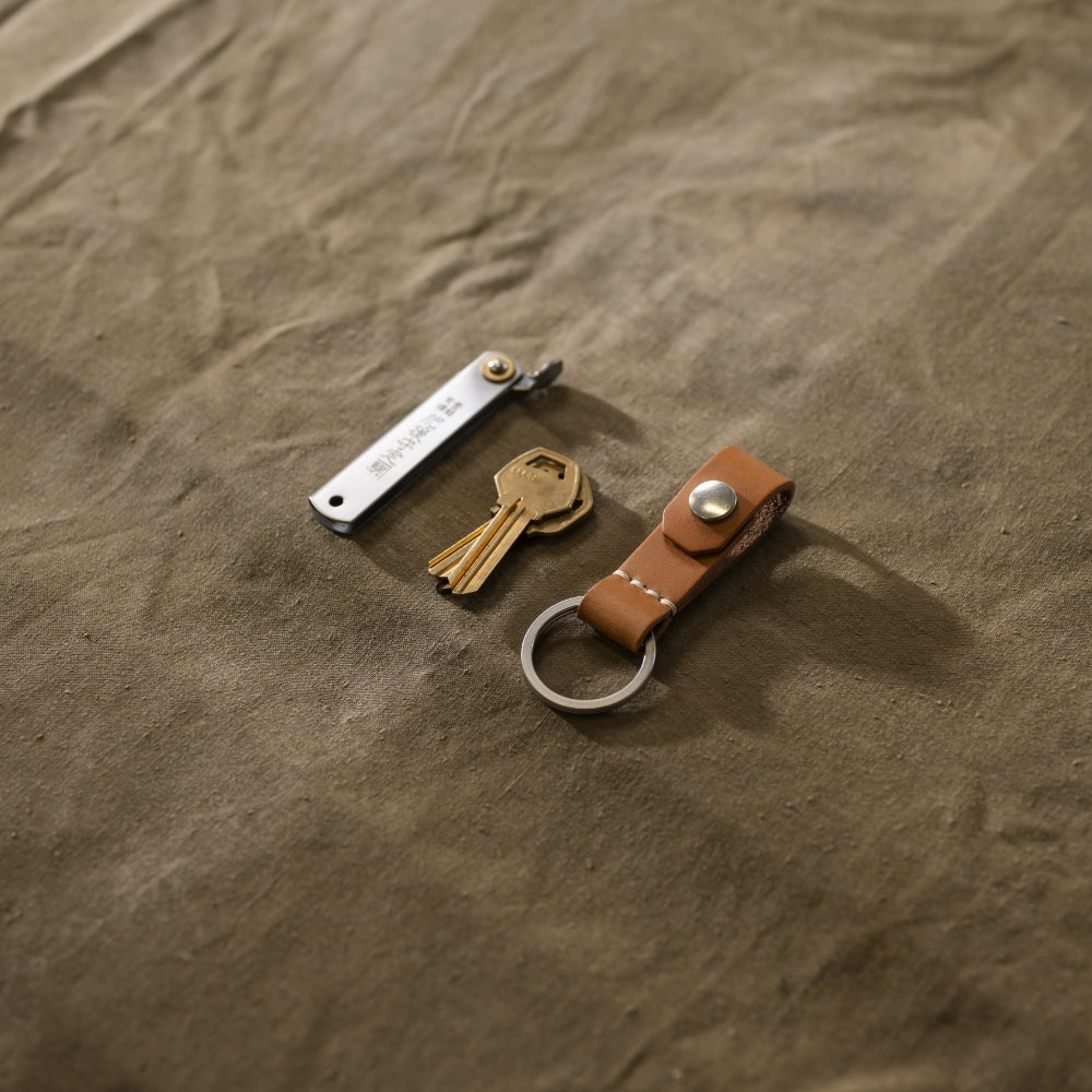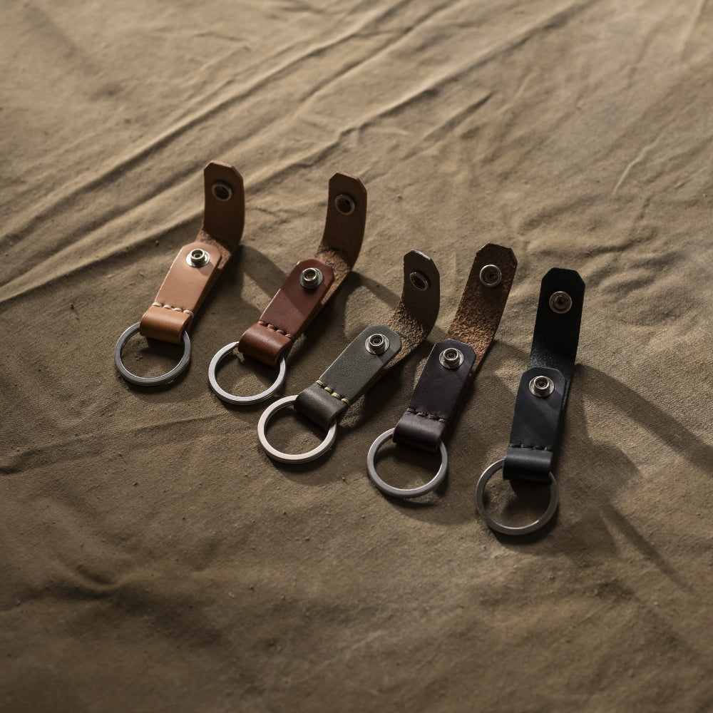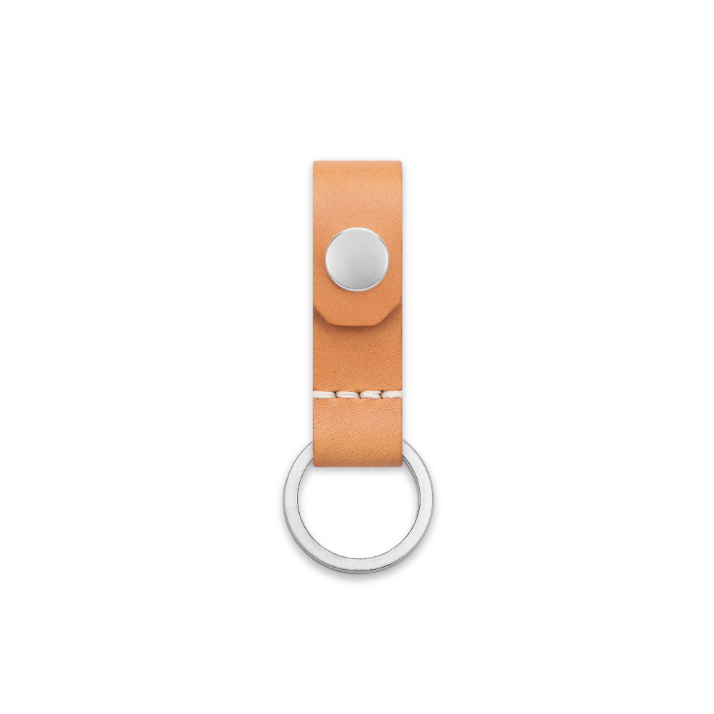 Robust key carry made from vegetable tanned leather. Hand-stitched construction with beeswax-coated linen thread. Thanks to the heavy-duty stud closure, keys can be easily collected on the belt.